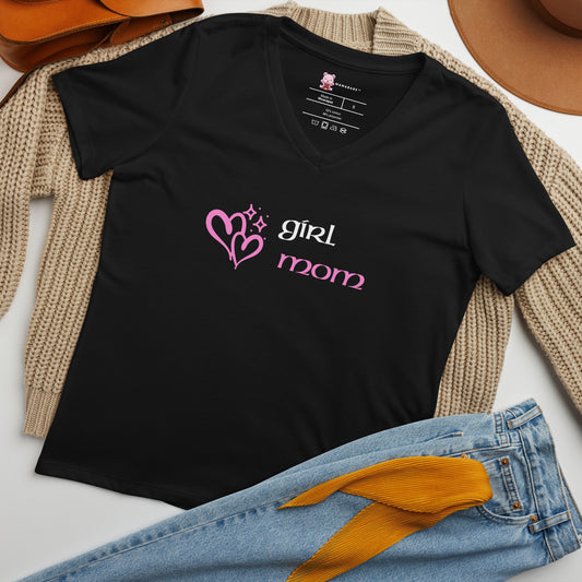 Girl Mom (Black) Women’s Relaxed V-neck T-shirt