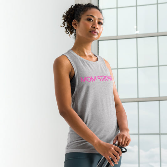 Mom Strong (Pink) - Ladies' Muscle Tank